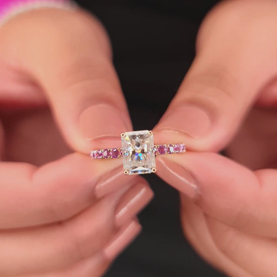1.67 Carat Radiant Cut Moissanite & Pink Sapphire 10K Gold Ring