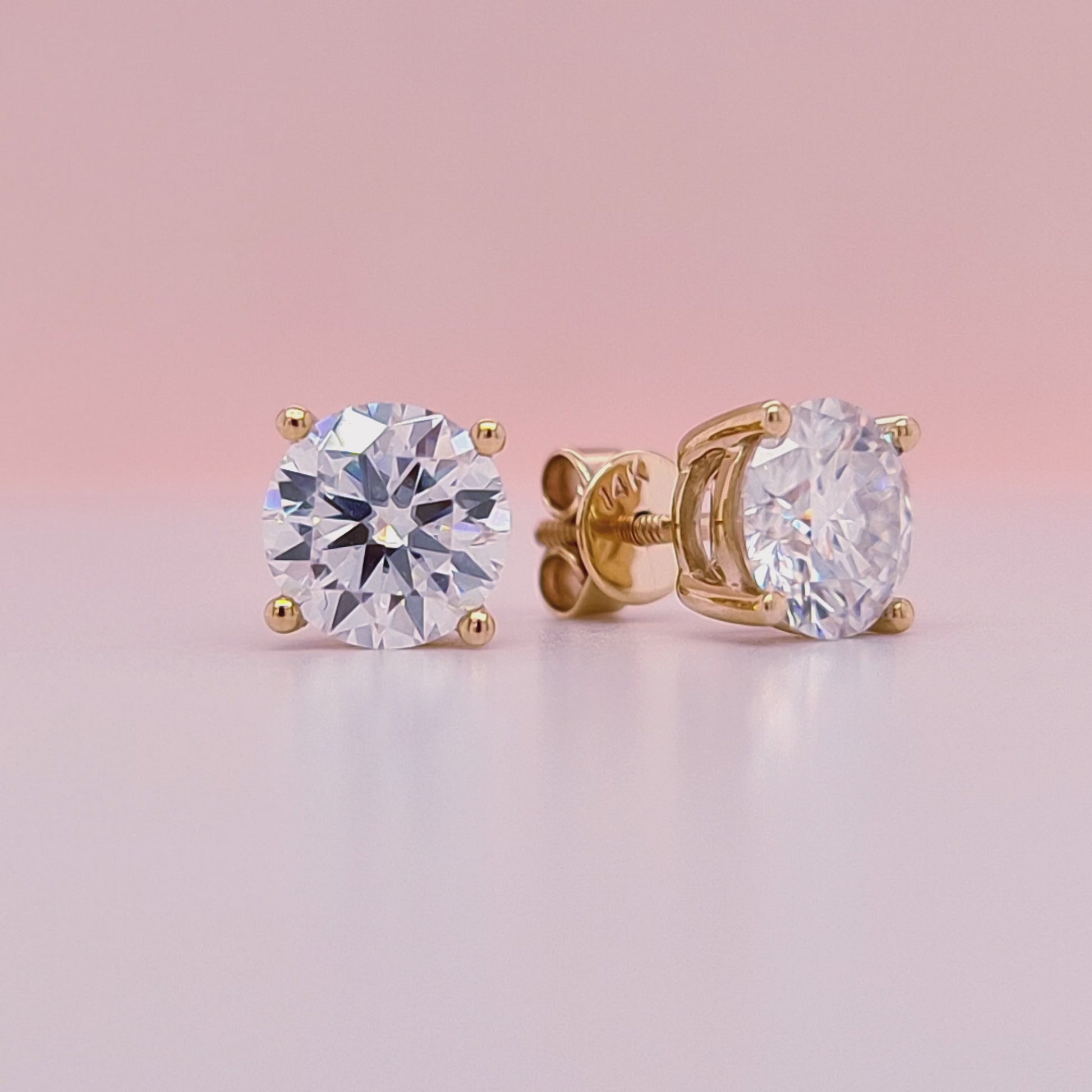 2 Carat tw Round Cut Moissanite Studs Ready to Ship