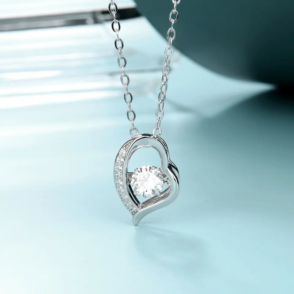 Dancing Moissanite in Heart Pendant Ready to Ship