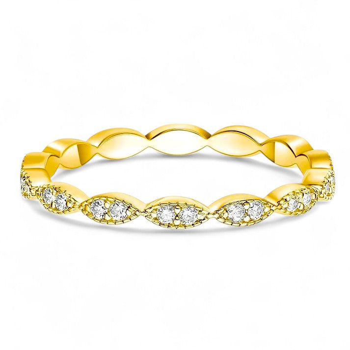 1.5 mm round moissanites in a marquise setting to create a truly delicate and feminine band. Perfect piece to add extra sparkle to your engagement ring.