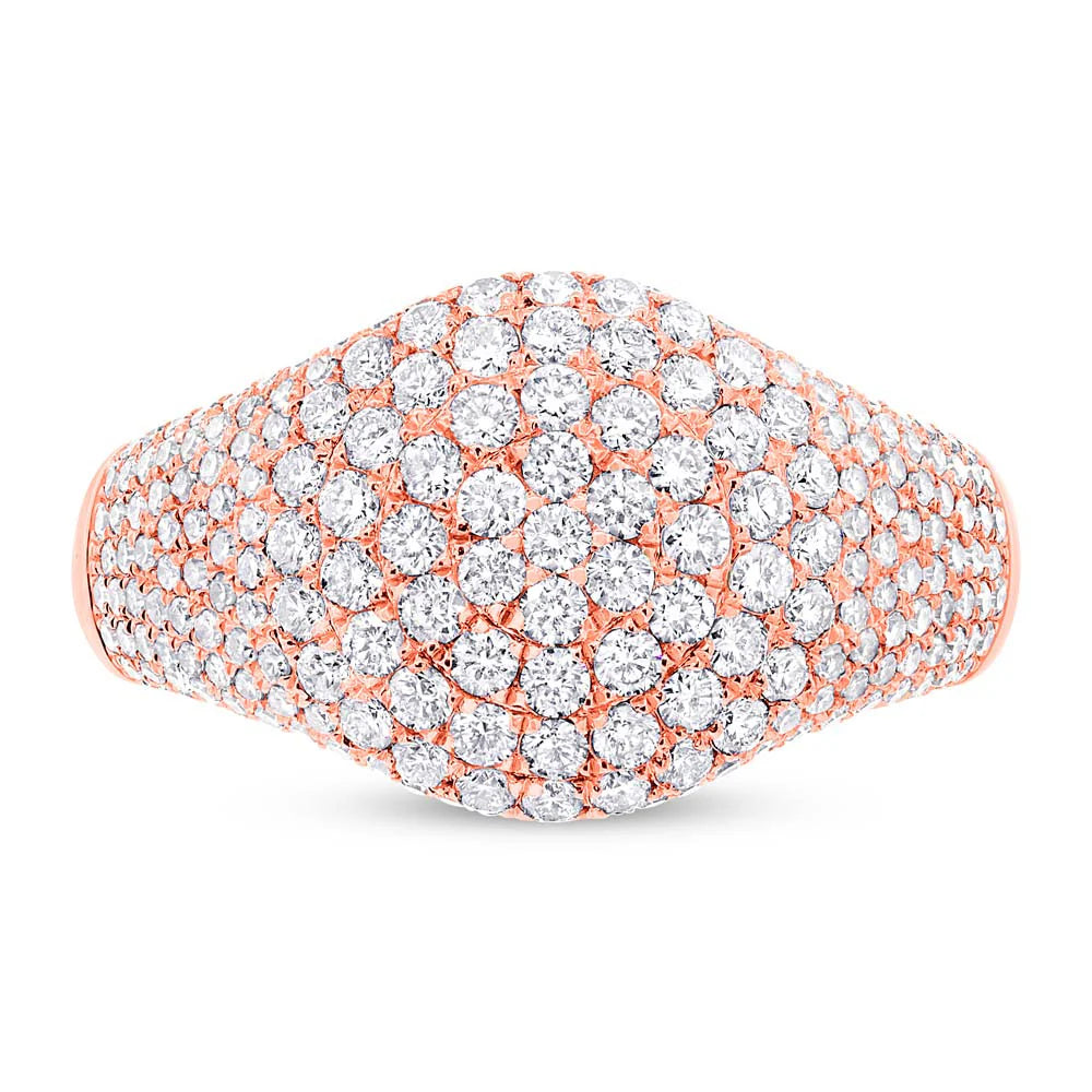 Bold brilliance meets everyday glamour. This domed signet ring is a sculptural essential, encrusted with sparkling moissanites for all over shine. Whether worn solo or stacked, it's the ultimate statement of elevated luxury.