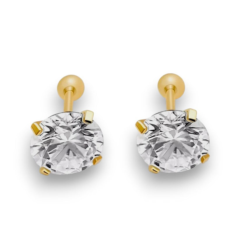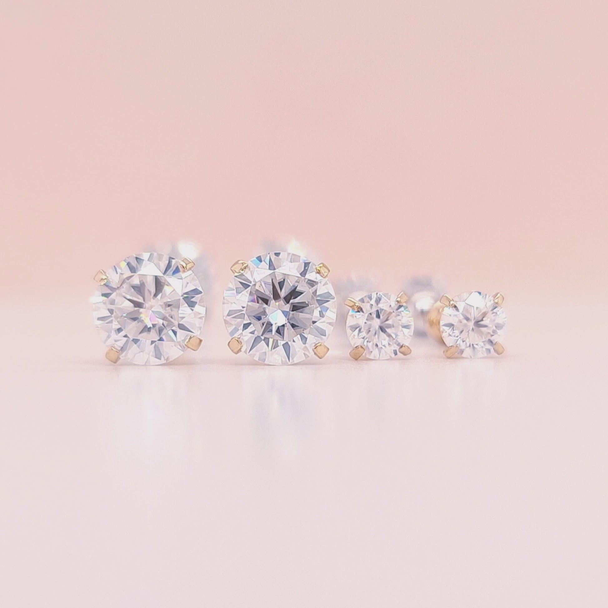 Round Cut Moissanite 14K Gold Sleeper Studs